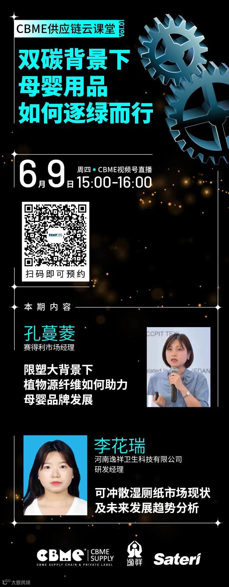 本期课程主题:双碳背景下,母婴用品如何逐绿而行!我们邀请了赛得利市场经理孔蔓菱、河南逸祥卫生科技有限公司研发经理李花瑞,为大家分享从原料入手打造高品质产品,为消费者带来优秀体验的同时,也为行业提供可持续解决方案。