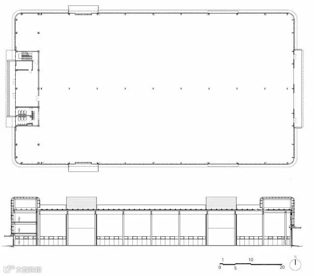 C型厂房首层平面、纵剖面