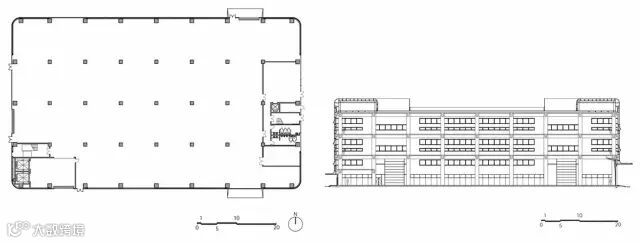 北侧的华平地块设有众多的单层厂房建筑,这些建筑的基座沿中轴线对齐排列,中轴线端部是一座五层建筑,该建筑的外立面同样采用了相同的波纹钢板,水平向窗带贯穿其间,和谐融入厂房建筑群的整体形象。
