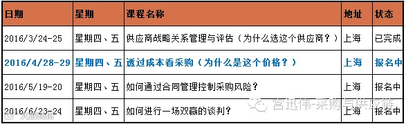 宫迅伟老师【专业采购4大核心能力】版权课程近期安排: