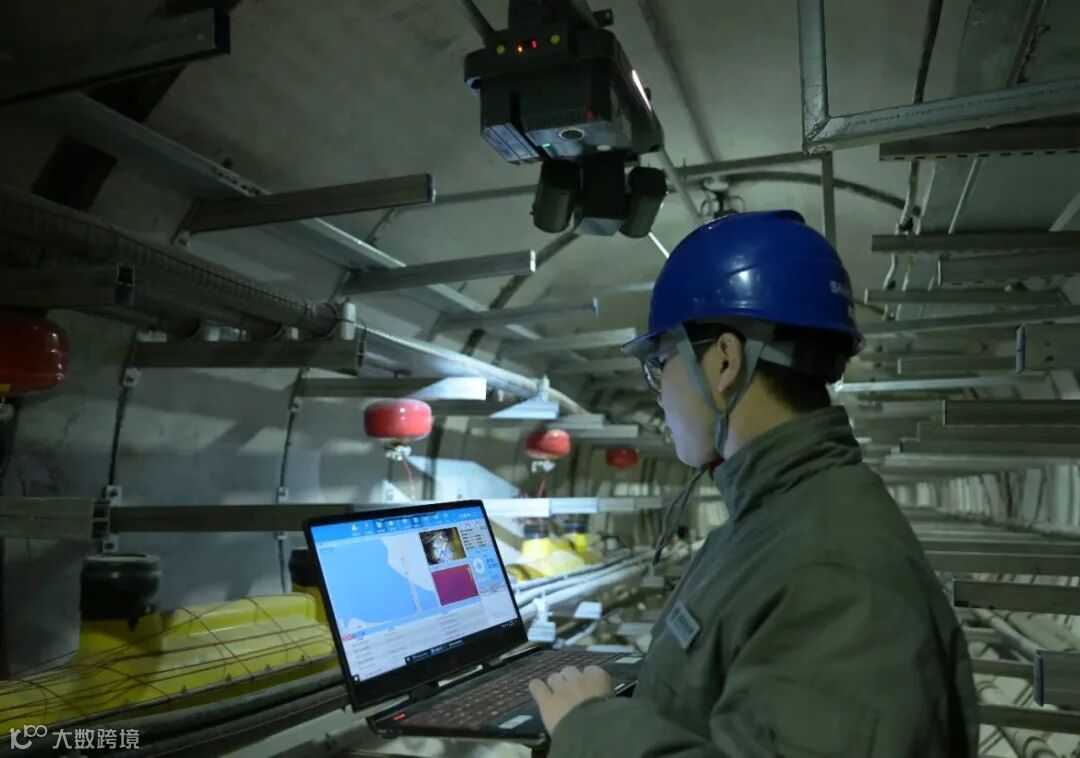 国网合肥供电公司工作人员在巢湖湖底电缆隧道内调试“机器人巡检员”。周牧 摄