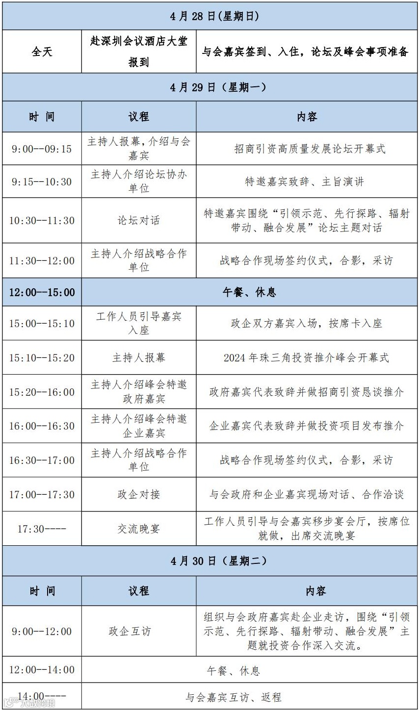 珠三角是我国经济发展最为活跃、开放程度最高、创新能力最强的区域之一。为深入贯彻党的二十大精神和中央经济会议工作精神,发挥珠三角在中国式现代化中更好的引领示范、先行探路、辐射带动作用,总结推广典型经验,加强各地政府及园区与珠三角经济深度融合,我会拟于2024年4月28-30日在深圳市举办第四届招商引资高质量发展论坛暨2024年珠三角投资推介峰会。现诚挚邀请各有关单位出席活动,有关事项如下: