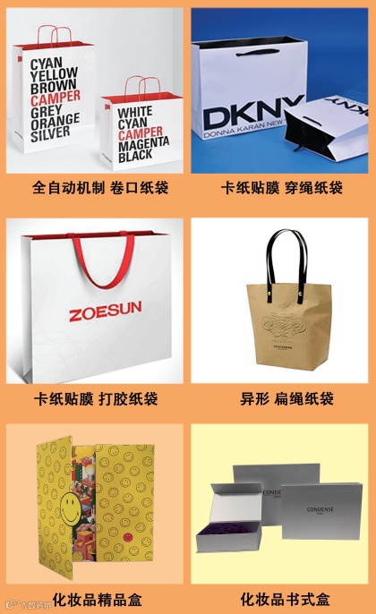 公司主要经营产品有服装纸袋、邮购易撕箱、邮购折叠盒、以及服装吊牌。产品被广泛应用在服装品牌、鞋类品牌、化妆品品牌,商场购物,快时尚品牌等。