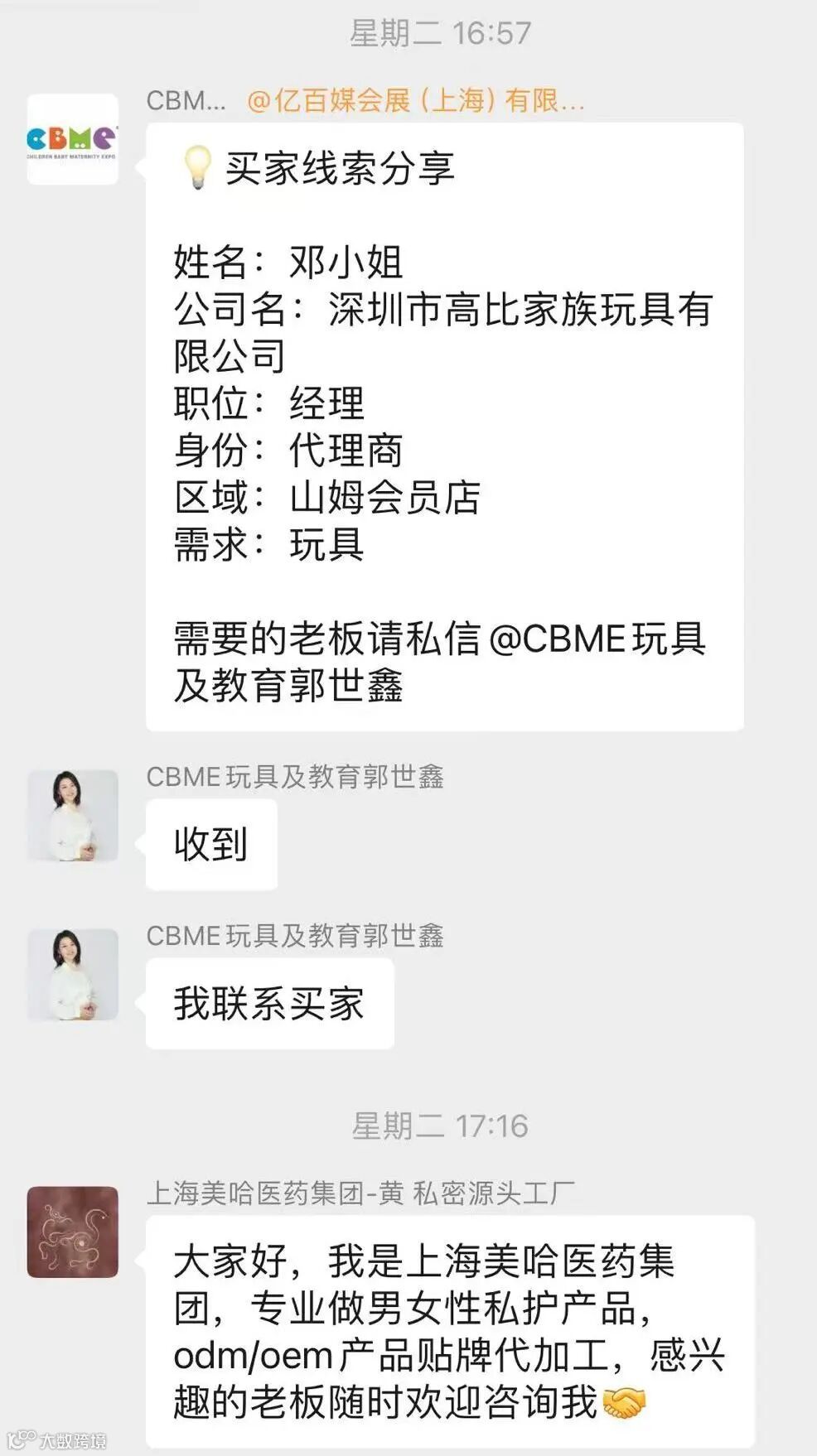 临近CBME展前,社群内会及时发布大量的品牌采购需求,买家通过查看相关信息可直接到展会现场做精准对接。
