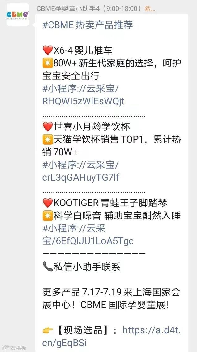 云采宝是CBME国际孕婴童展官方出品的小程序,帮助各渠道买家与所有参展的展商高效线上对接。