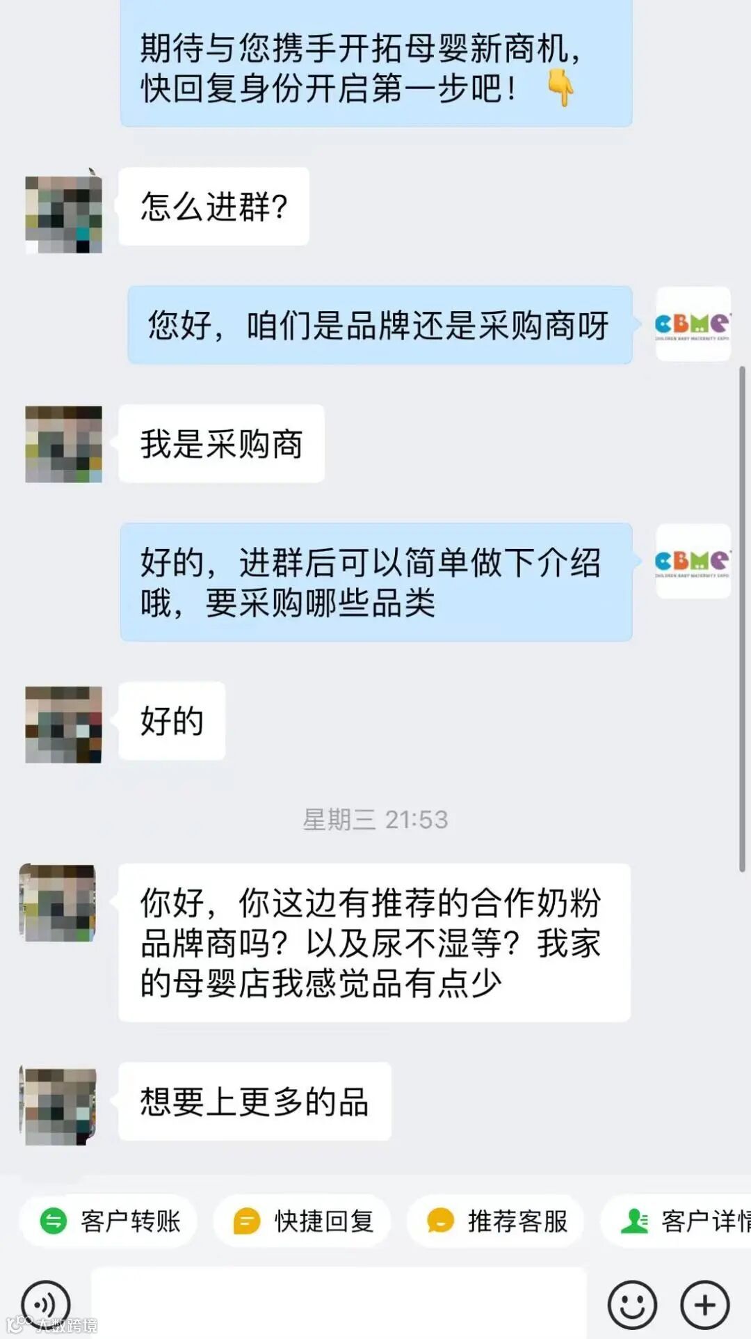CBME国际孕婴童展不仅是年度行业盛会,更是365天持续赋能的资源整合平台。通过专业社群运营、1V1需求配对、云采宝小程序以及全媒体矩阵曝光,持续为品牌提供长效对接&曝光服务。"