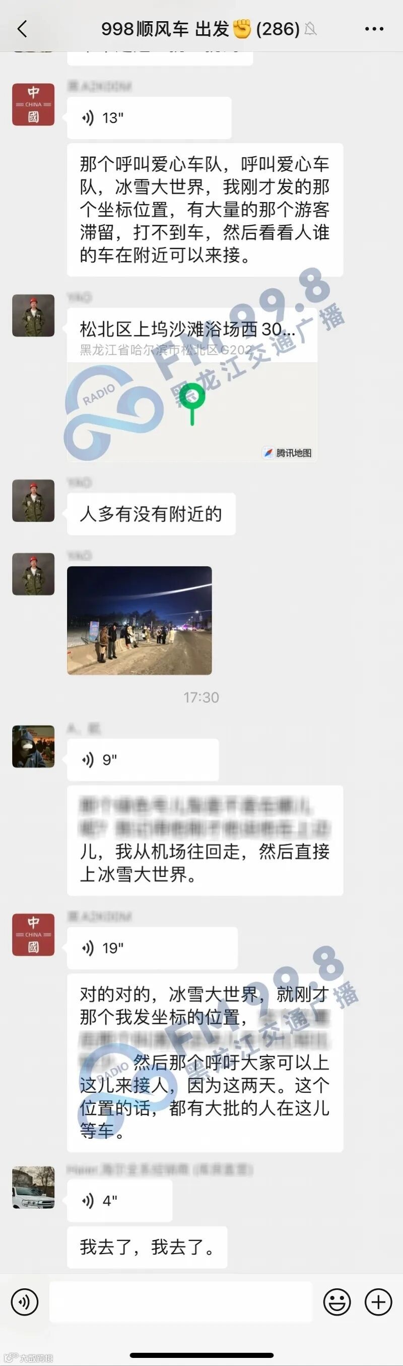 哈尔滨热心车主们在群里交流。