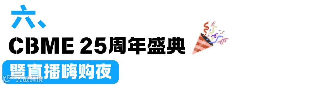 CBME展期第一天的压轴大戏!CBME 25周年庆典与大型直播嗨购夜深度融合!知名达人助阵,集庆典、直播带货、限时福利于一体!