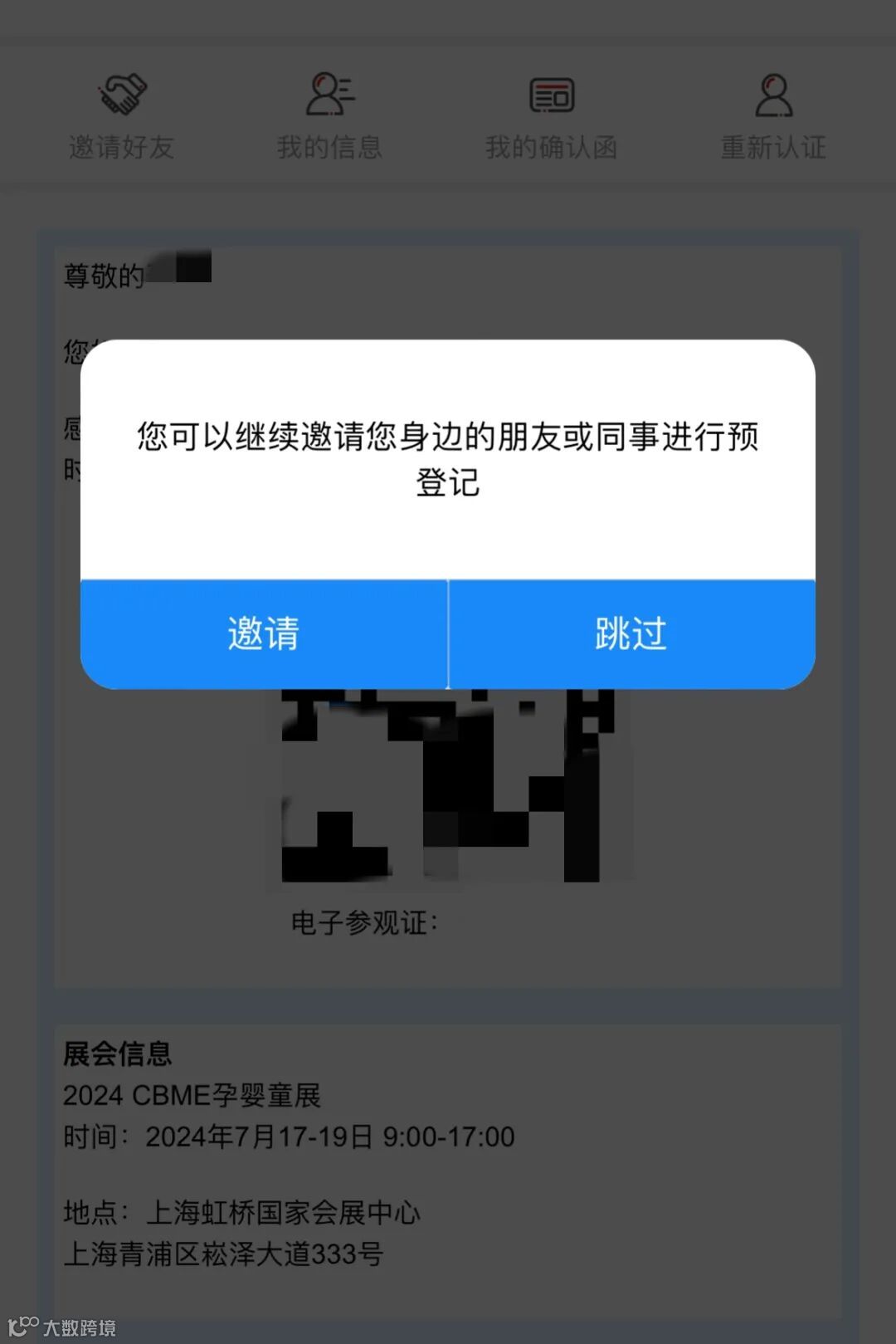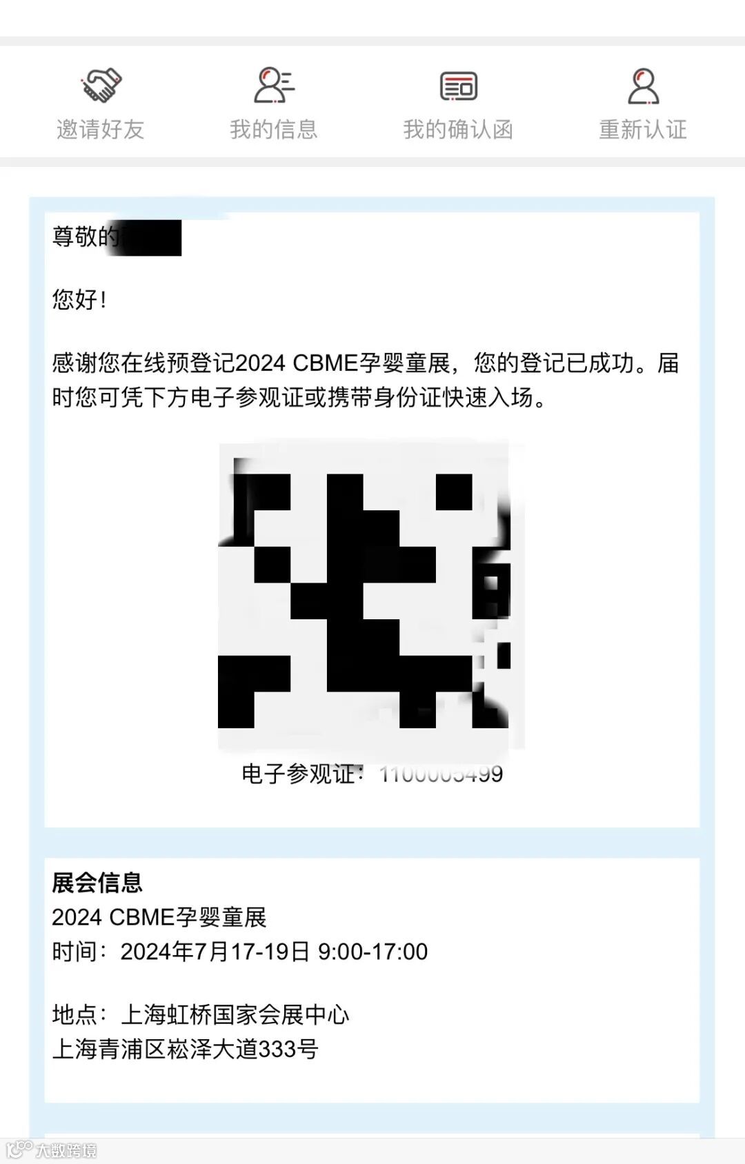 预登记成功后,页面显示的二维码,凭参观二维码与身份证入场。