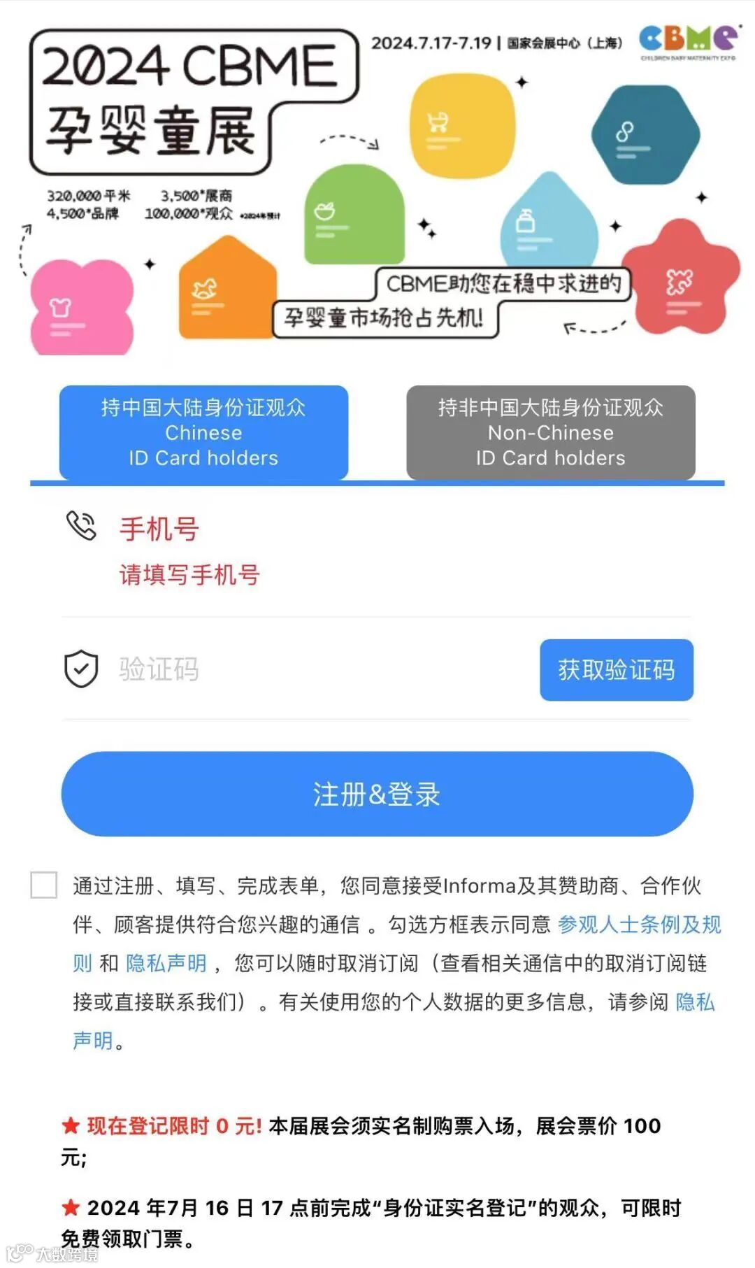 即日起至7月16日17点前,完成预登记的观众,可免费入场参观;7月17日-19日展会期间,现场登记需购门票入场(100元)。