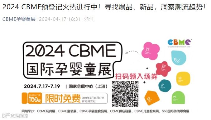 深挖行业需求,重塑竞争优势,依托CBME国际孕婴童展在泛母婴家庭衣食住行国内外全品类、全渠道、全产业链的丰富资源,2024CBME供应链展将于7月17-19日在国家会展中心(上海)同期举办。汇聚众多母婴品牌产品、研发、生产、采购部门人员、行业供应链领域优秀企业以及旺盛的市场需求,届时将为行业搭载一个优质高效的价值平台,助力企业在全球化浪潮下破局突围。