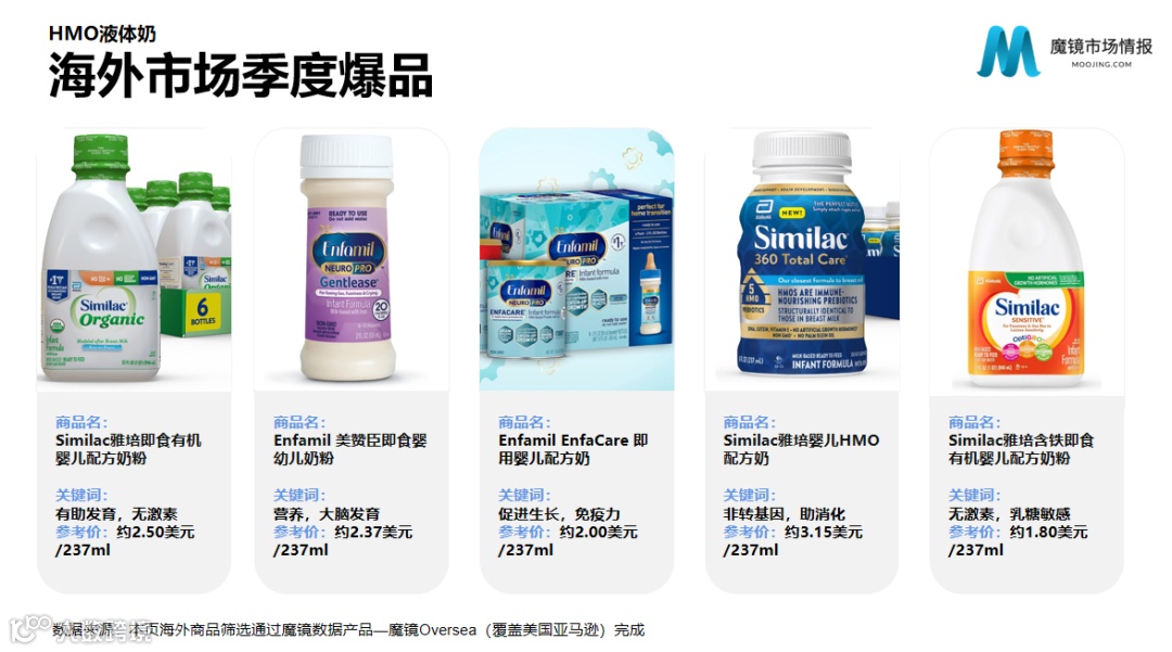 5.HMO液体奶:2022年Q2,HMO液体奶在淘系上销售额同比增长了171.6%,即开即饮适合外出携带及新手爸妈带娃,目前国内对液体奶的认知度普遍不高,品牌以雅培为主,目前市场还处于探测期。