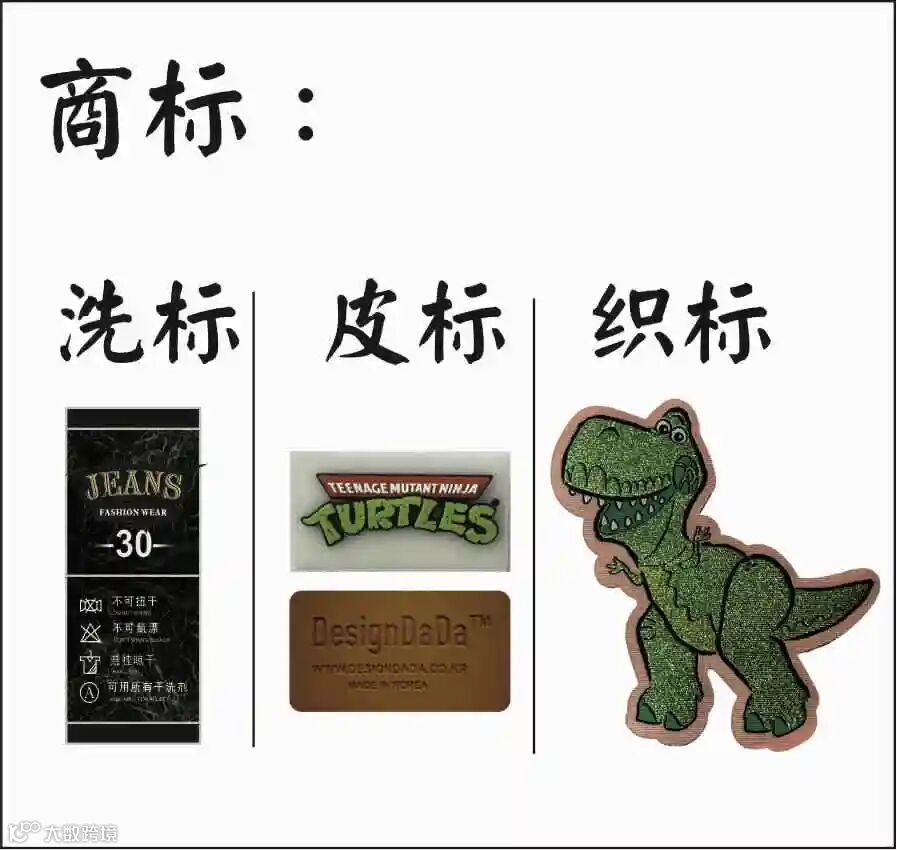商标洗标,又叫洗水唛,会标注衣服的面料成分和正确的洗涤方法:比如干洗、机洗、手洗,是否可以漂白,晾干方法,熨烫温度要求等,用来指导用户正确对衣服进行洗涤和保养;洗水唛一般会车在后领中、后腰中主唛下面或旁边,或者是车在侧缝的位置。一般来讲不会单纯以洗标的资料来判断真假,为洗标较容易制造。