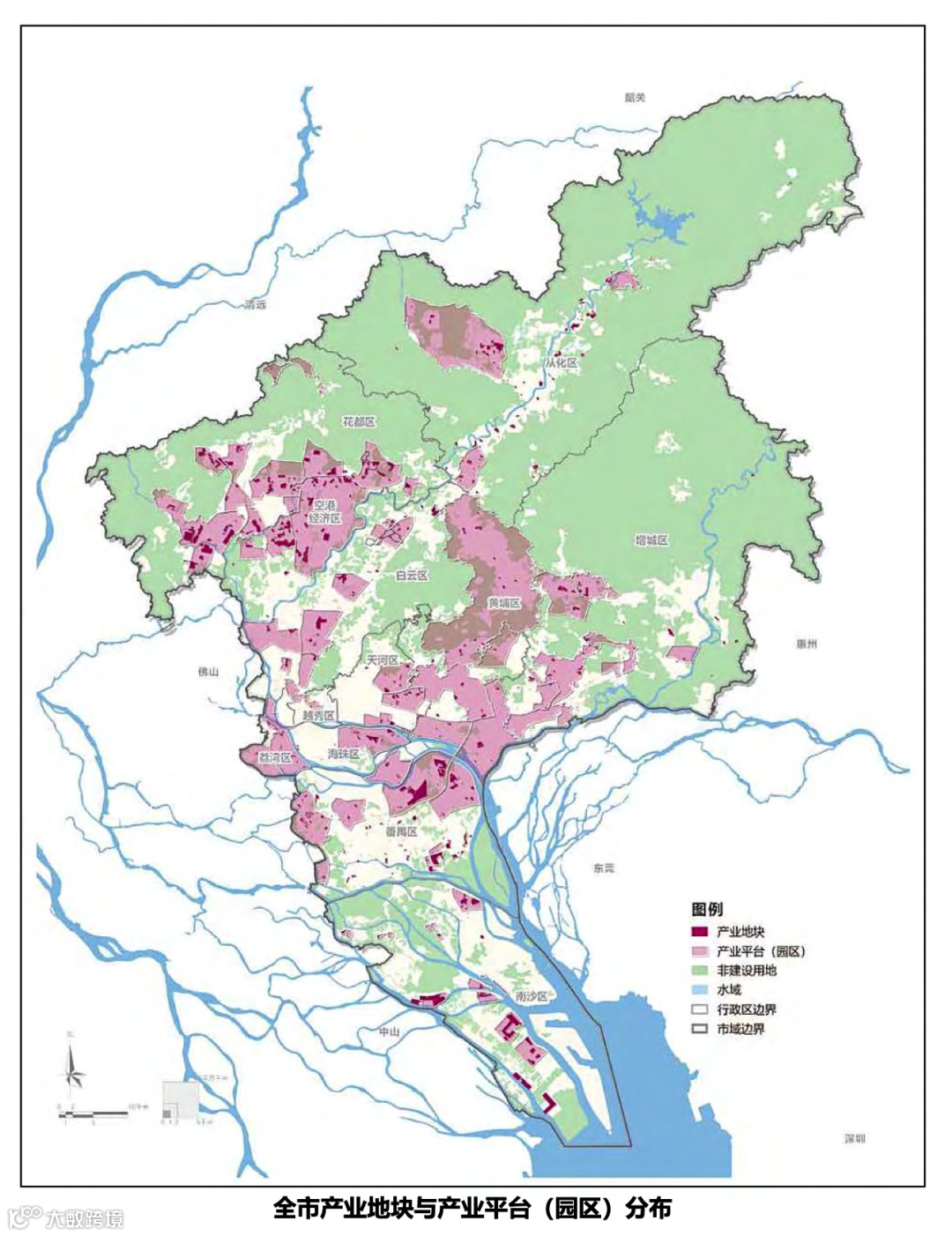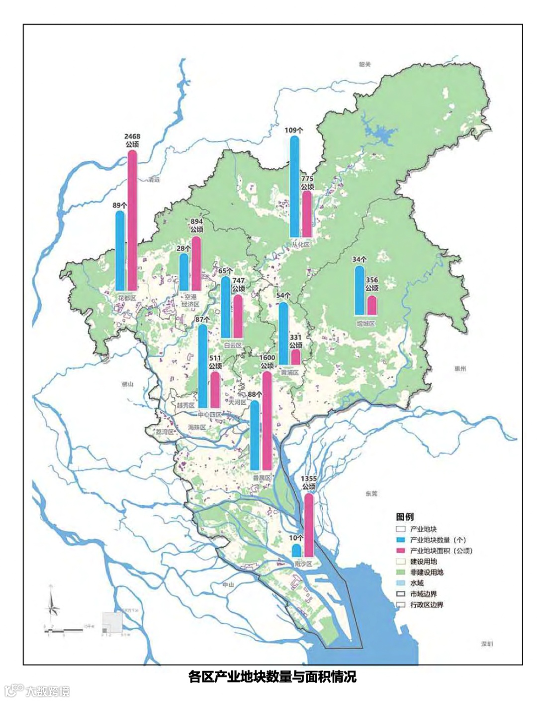 2021年广州全市产业地图公布的各区产业地块的分布情况