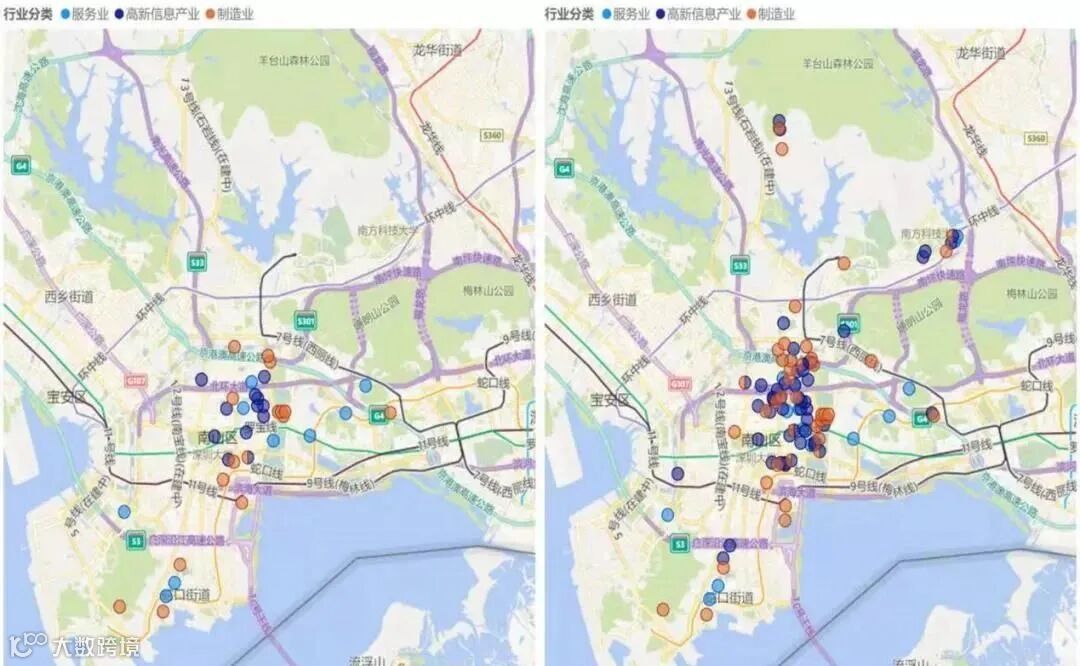 第一个结论,在深圳高新区11平方公里的面积上,可以看到企业的集中度越来越高,更多的企业向这11平方公里集中。