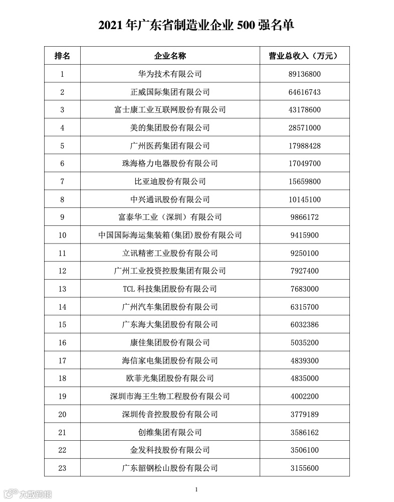 在今年8月发布的《财富》世界500强榜单中,中国共有145家公司上榜,占全球四分之一以上。其中,属于2022年广东省制造业500强的企业有7家,比去年多了1家,分别是正威国际集团有限公司、华为投资控股有限公司、广州汽车集团股份有限公司、美的集团股份有限公司、比亚迪股份有限公司、广州医药集团有限公司和珠海格力电器股份有限公司。