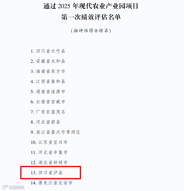 泸县现代农业产业园在2025年农业农村部绩效评价中位列全国第13名(共46个产业园),展现出优异的发展质量。园区自2021年建成省三星级园区后实现跨越式发展,2022年晋级省五星级,2024年成功入选国家现代农业产业园项目立项名单,是泸州市首个进入建设名单的产业园。该园区覆盖7个镇39个行政村,占地面积231.3平方公里,以油菜、水稻为主导产业,2024年主导产业全产业链产值达21.11亿元。园区创新推行"粮油轮作、种养循环"绿色发展模式,建成5万亩油菜高产示范片和5万亩"中稻+再生稻"示范基地,形成20公里产业环线。