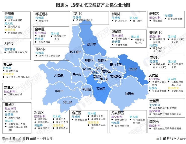 双流区和武侯区产业集聚效应明显,两区在航空材料、无人机、传感器、低空农业等方面都有布局,形成上下游配套格局。青羊区凭借132厂(航空工业成都飞机工业(集团)有限责任公司)、611所(航空工业成都飞机设计研究所)等链主企业,跻身国家级航空配套产业集群,聚集企业超百家。