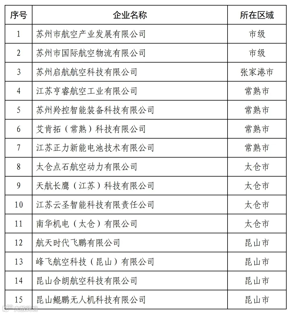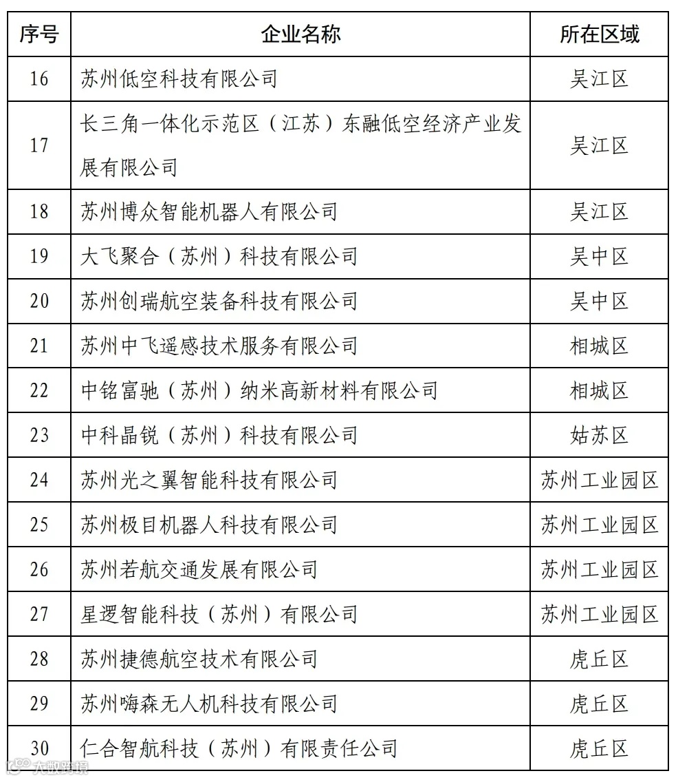 苏州市首批低空经济领航企业名单(