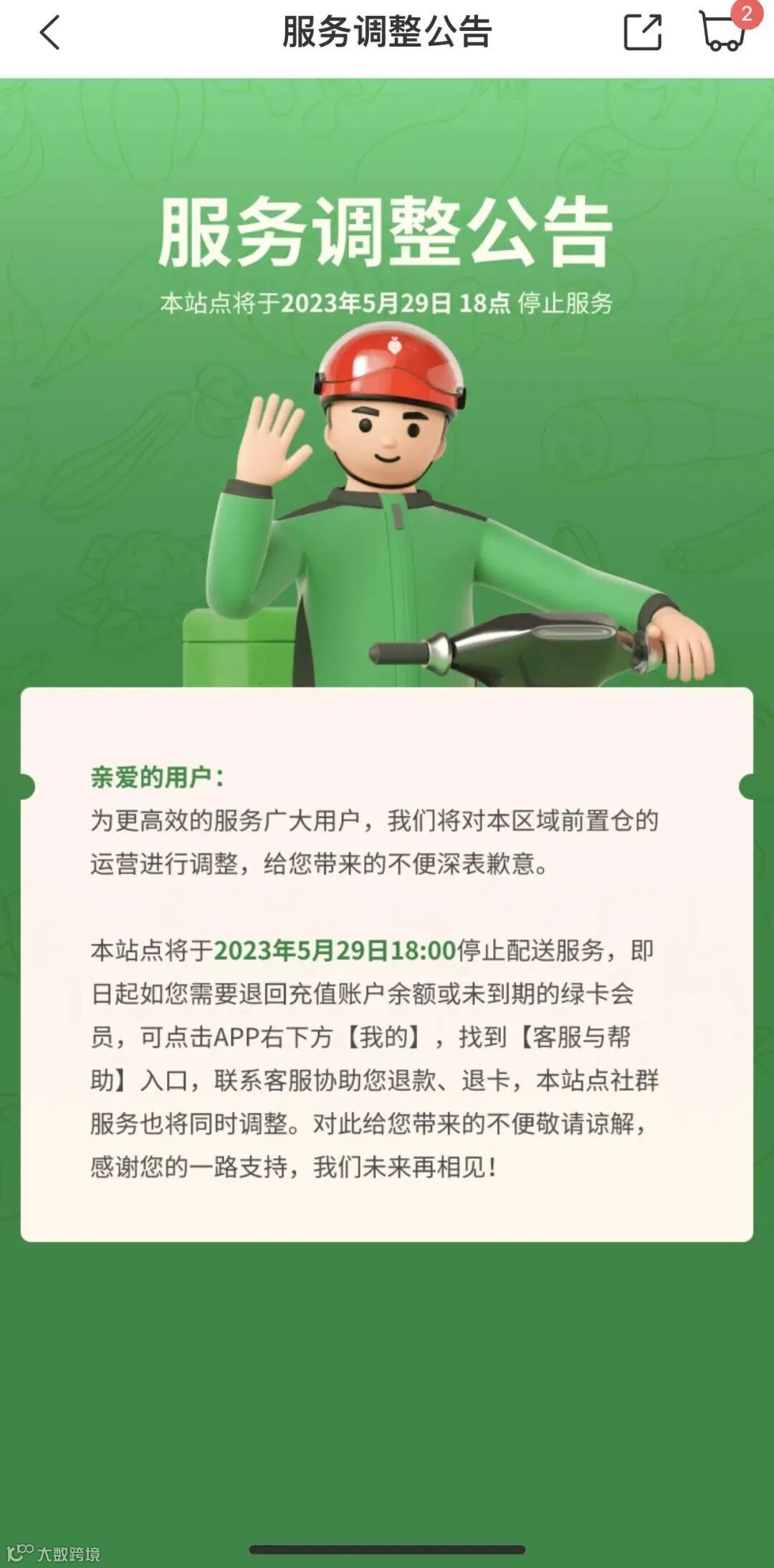 5月22日凌晨0:26,叮咚买菜发布公告,川渝站点将于5月29日18:00停止配送服务。