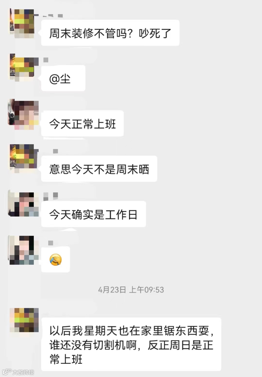这两天是安生了,那过两天“禁噪公告”过期之后呢?小编随机采访了办公室的几个同事,无一例外,全部都在小区业主群里面,看到过针对噪声的投诉(甚至吵架)。