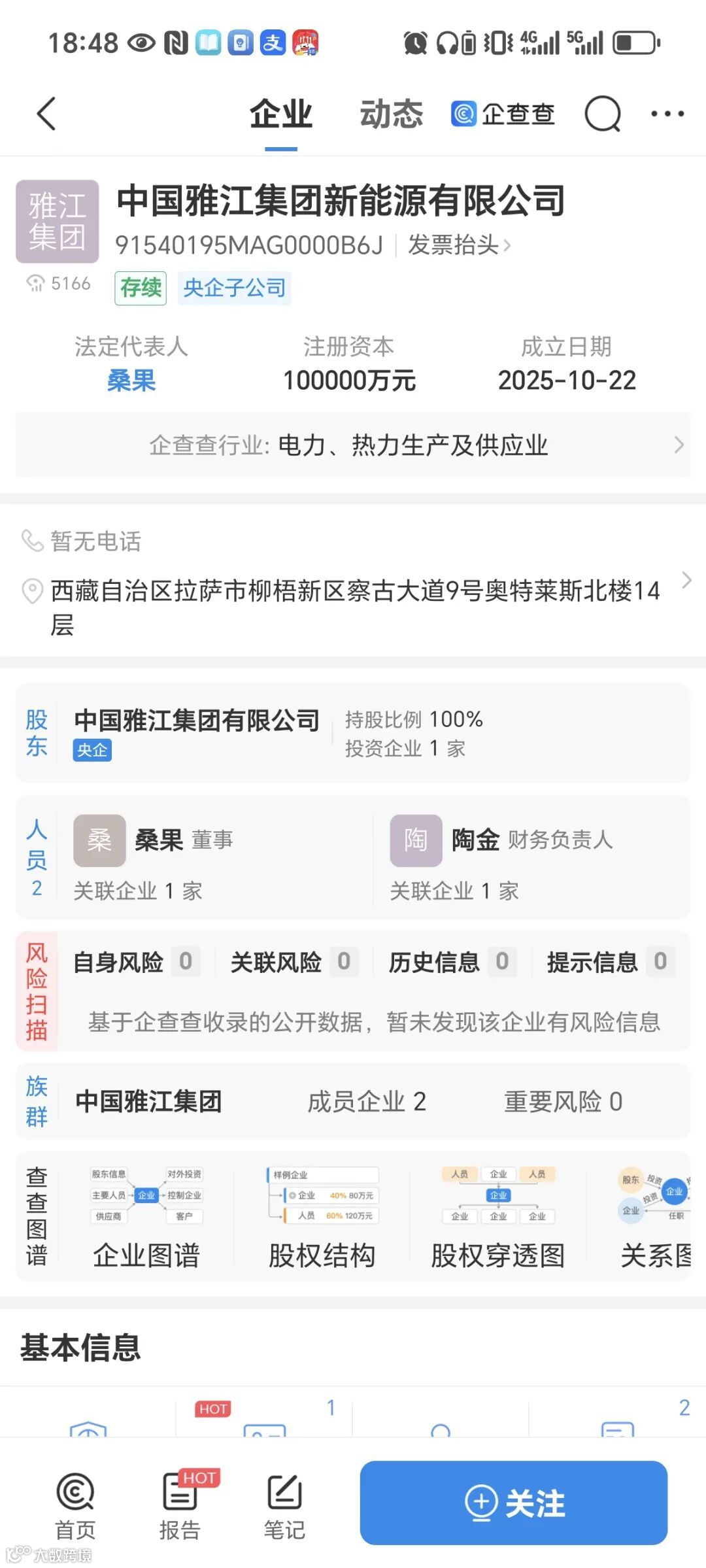 7月,新组建的央企中国雅江集团有限公司(以下简称“雅江集团”)工商登记信息已更新:其注册地址为西藏自治区林芝市工尊中路368号。此前,大家一直在热议雅江集团总部究竟会设在西藏、成都还是北京,现在这个问题终于有答案了。
