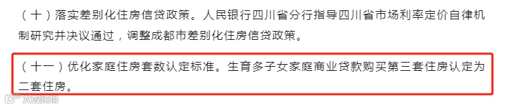 政策显示,单身、非成都户籍可买2套,家庭可买3套,二孩可买4套,三孩可买5套。