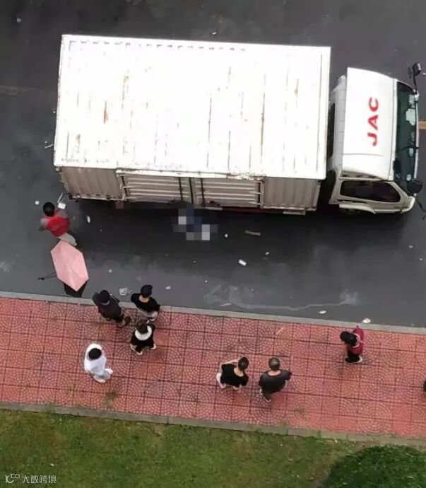 目击者拍下的快递货车碾轧后的场景。受访者供图@千龙网中国首都网