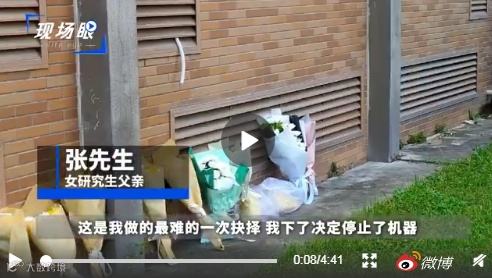 张某某的父亲张先生透露,在医院见到女儿时,她仅靠机器维持,医生称到医院已十分危重,不具备手术条件,晚上不得已决定停止机器,“这是我做的最难的一次抉择。”
