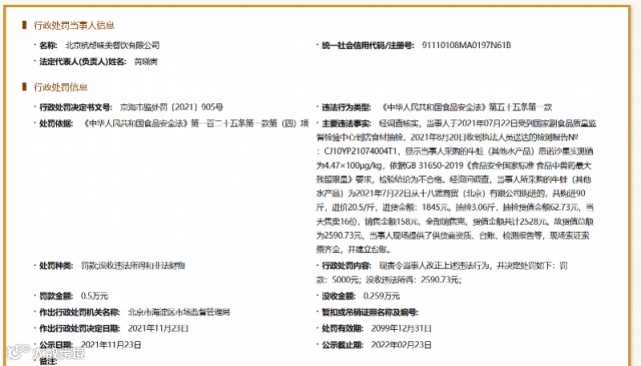 新增一则行政处罚信息