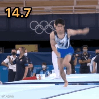在昨天的体操比赛中,中国选手肖若腾对战日本选手桥本大辉。