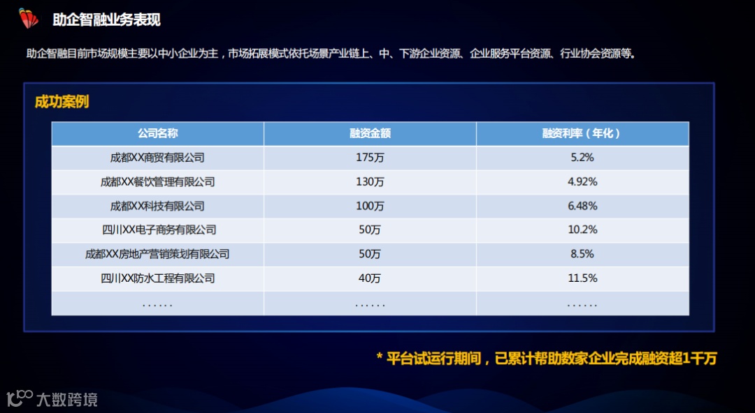 面对同行业的诸多竞争对手,创始人杨超告诉记者,未来企业将会投入更多的一些研发和市场的一些营销能力,尽可能的帮助更多中小企业进行融资,特别是受疫情影响下的企业。并且由于过去两年看到了很多的资本市场缺少资金,因此未来企业不以股权融资作为核心目标,而是以“自我造血”为主,同步寻找未来对企业有帮助支撑的一些战略性投资人进行合作。“努力将去年亏损的四五百万在今年赚回来,并且在今年2月已经有了盈利”,对于未来,杨超还是充满了信心。