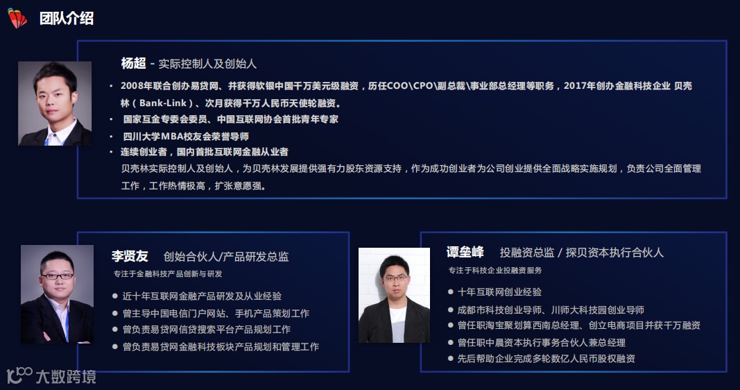 杨超告诉记者,在他看来,金融科技行业是金融与科技两个大行业的融合,门槛是相对比较高的,而贝壳林所有的创始团队成员在对金融服务行业及金融科技行业都具备一定的经验和资源,每个部门的负责人及员工大都属于合伙人,并且在金融科技领域或传统金融机构中从事很多年,有着丰富的从业经验。超级“硬核”的创业团队形成了贝壳林在行业内的独有竞争力。