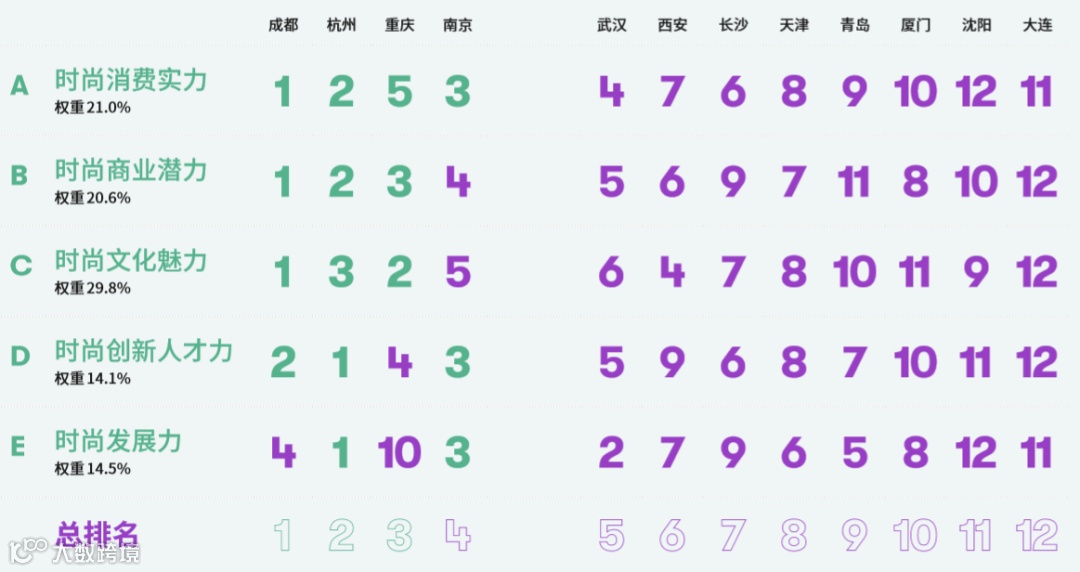 成都以9.3的总分位列榜首,并在“时尚消费实力”、“时尚商业潜力”、“时尚文化魅力”三个维度上排名第一。
