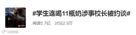 15日,网传#四川达州外国语学校因不准带牛奶入校,两名中学生被迫蹲在校门口喝奶#事件学校校长被当地教育主管部门约谈。