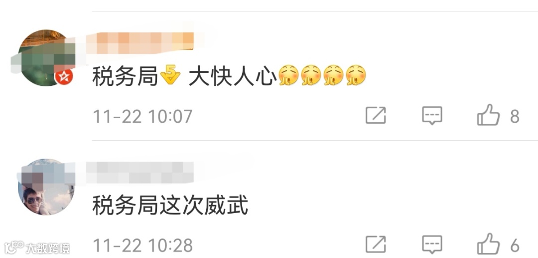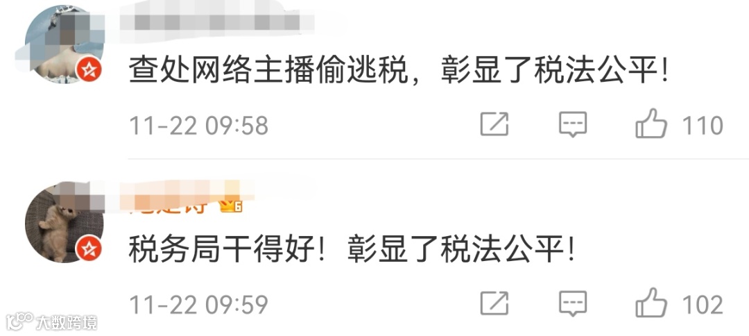 同时,税务部门通过税收大数据分析,还发现其他个别网络主播在文娱领域税收综合治理中自查自纠不到位,存在涉嫌偷逃税行为,正由属地税务机关依法进行稽查。