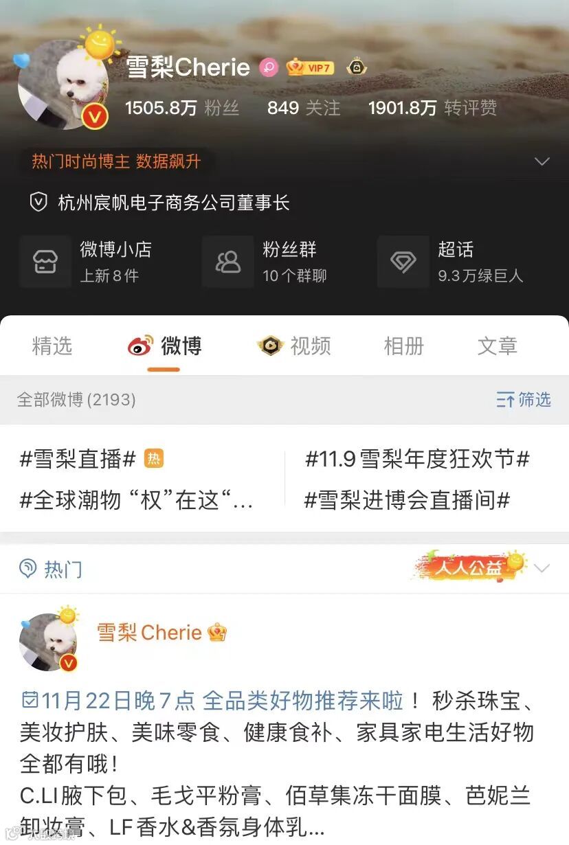 公开信息显示,朱宸慧(微博ID:雪梨Cherie)微博粉丝高达1506万,其微博认证为杭州宸帆电子商务公司董事长。林珊珊(微博ID:林珊珊_Sunny)微博粉丝达950万,其微博认证为时尚达人、sunny33小超人品牌主理人。