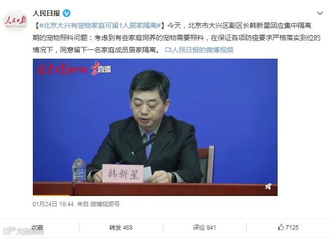 北京大兴有宠物家庭可留1人居家隔离