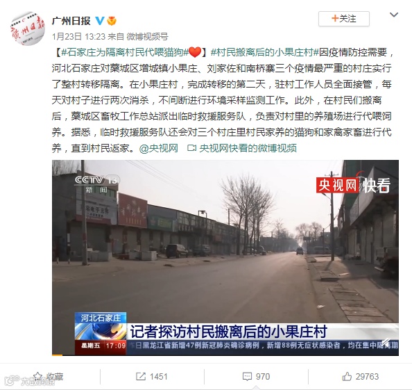 石家庄为隔离村民代喂猫狗