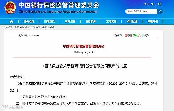之后,在2020年11月,中国银保监会“原则同意包商银行进入破产程序”。2021年2月,北京市一中院裁定包商银行破产。与此同时,包商银行背后的腐败网络也被一步步挖出。