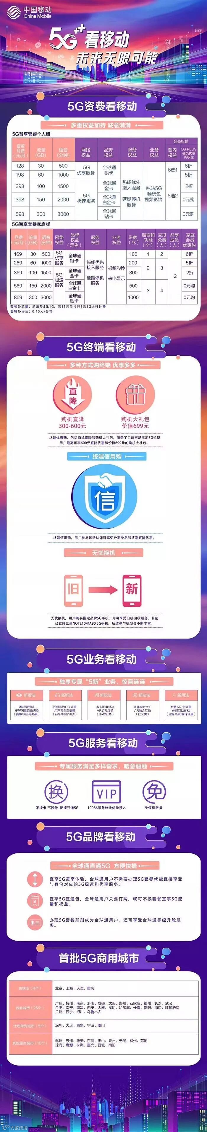 滑动查看移动5G套餐详情☟