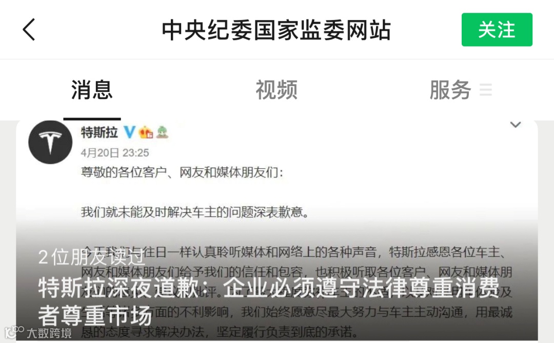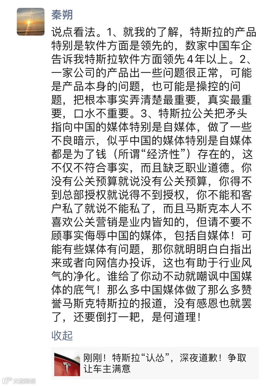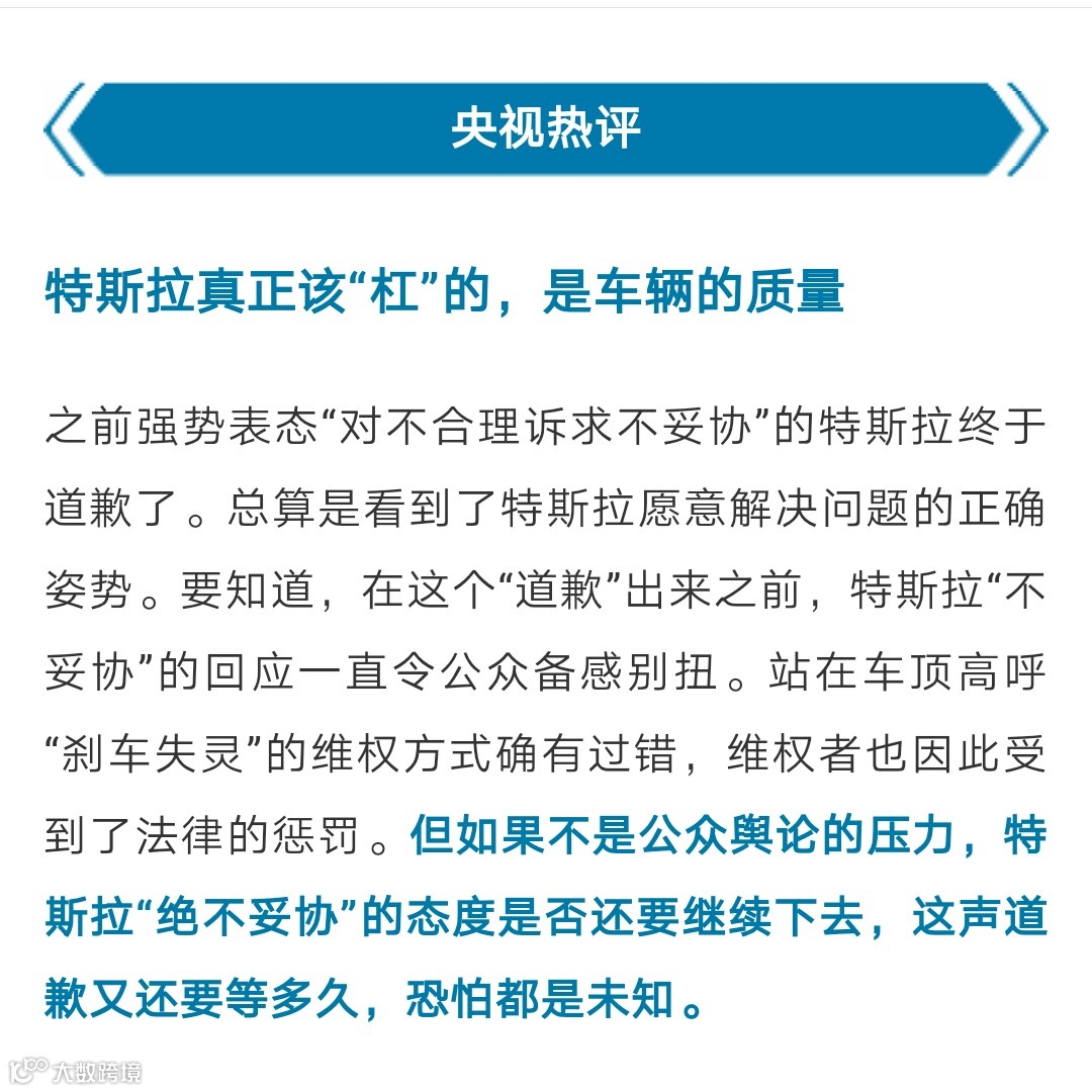 “特斯拉深夜道歉,态度大变”的消息。)