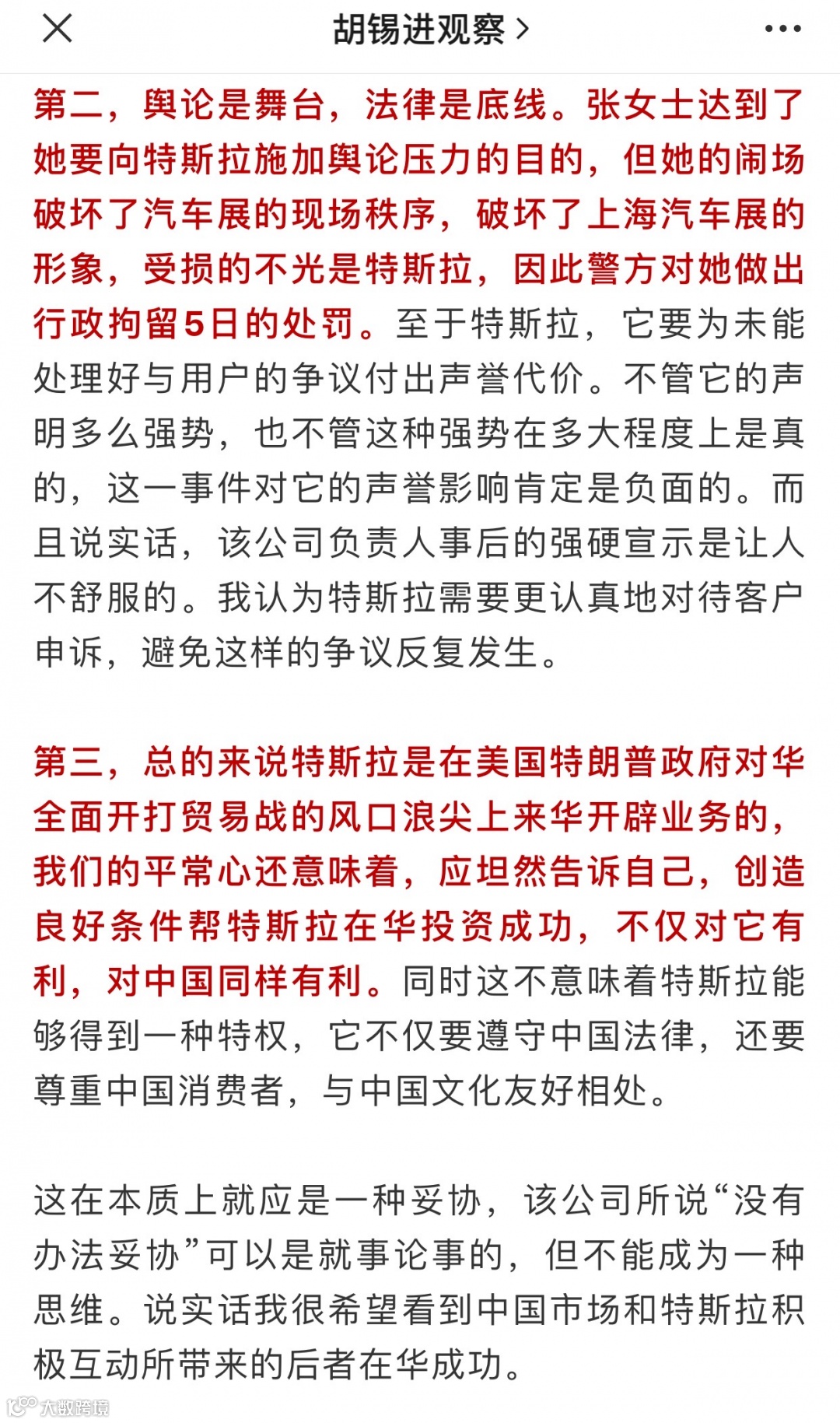 胡锡进说了三点想法
