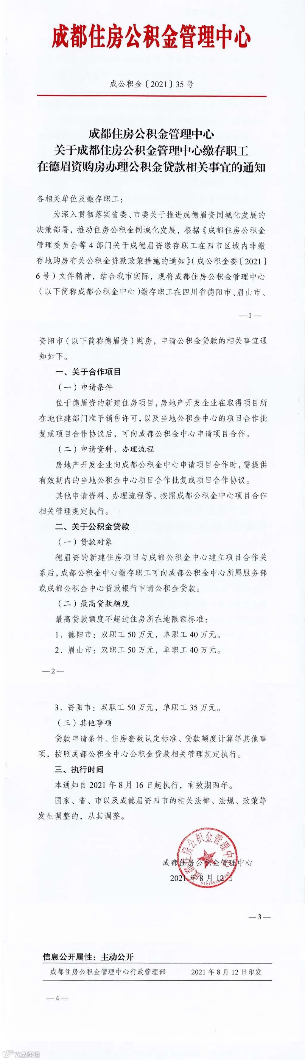 《成都住房公积金管理委员会等4部门关于成德眉资缴存职工在四市区域内非缴存地购房有关公积金贷款政策措施的通知》