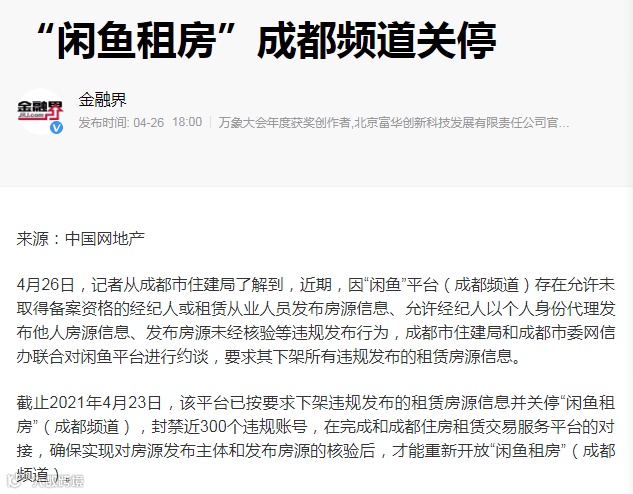 因为发布违规房源被关停。