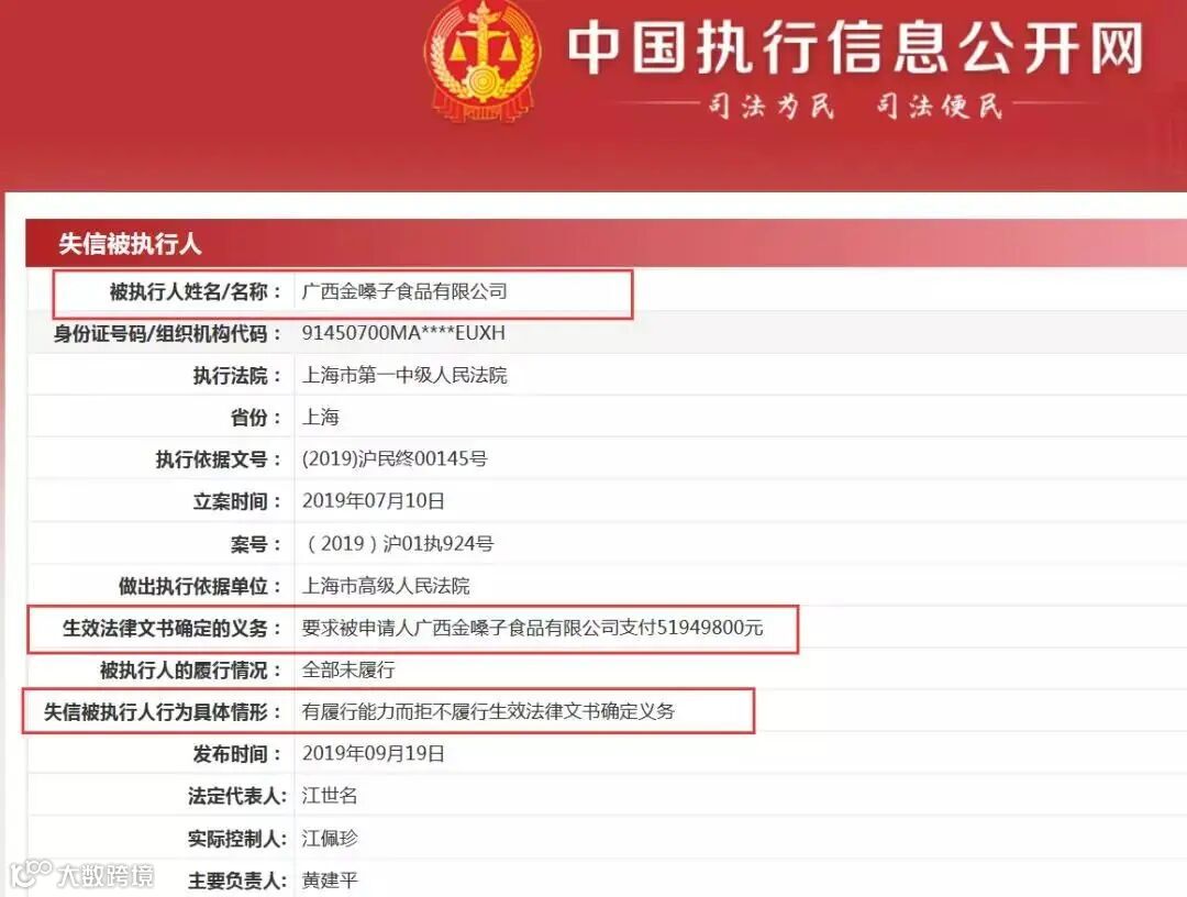 董事长江佩珍被列为“失信执行人”