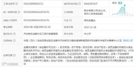 1、2016年9月在成都注册雅堂金融,2017年11月28日核准。