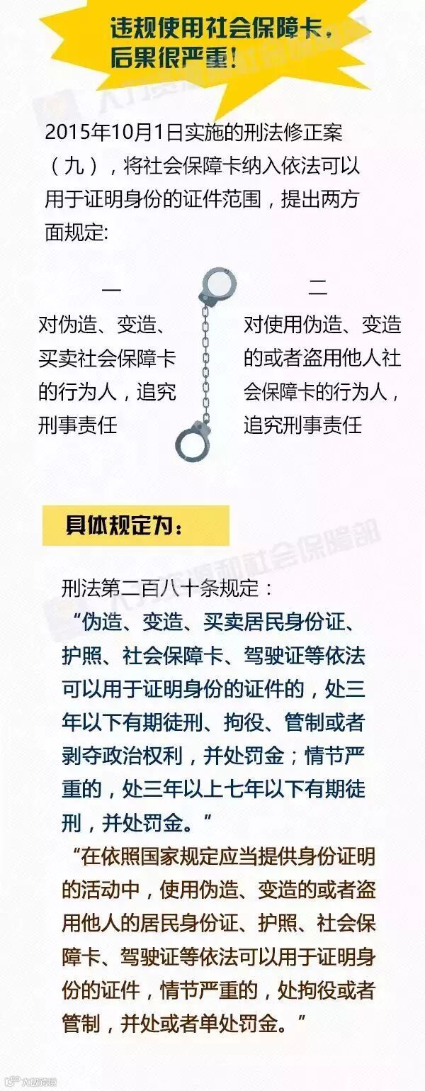 2015年11月1日正式施行的《中华人民共和国刑法修正案(九)》已将社会保障卡纳入依法可以用于证明身份的证件范围。