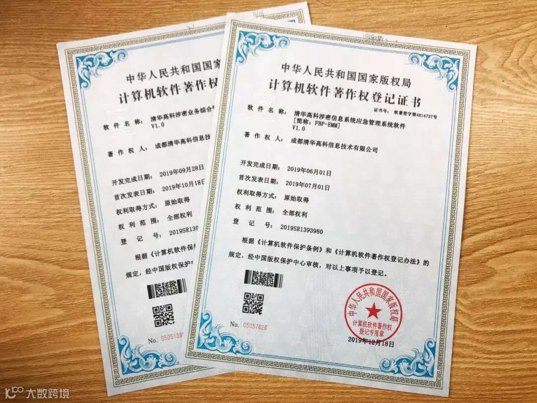 (清华高科获计算机软件著作权证书)