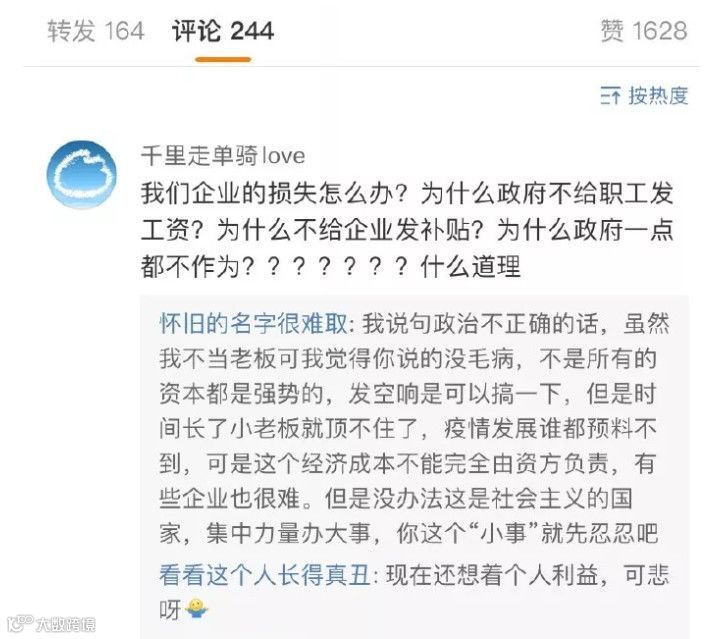 每当员工们在家里尽职地扮演好废人等待投喂,中小企业的老板们就在心里悼念从腰包流走的人民币。